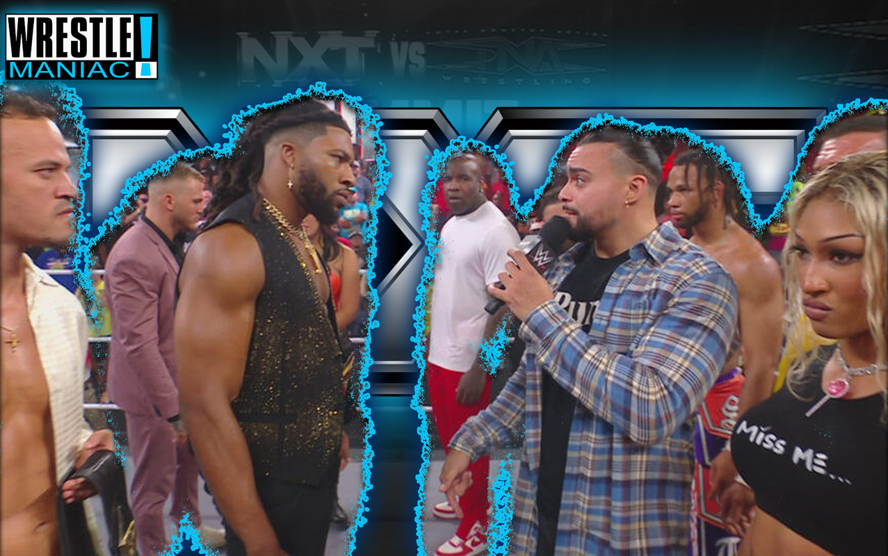 Η Jacy Jayne διέκοψε τον Saints και, με αποδοκιμασία από το κοινό, δήλωσε πως το TNA απειλεί την κυριαρχία του NXT. Η GM Ava τοποθέτησε τους Saints και Jayne ως αρχηγούς των ομάδων ενόψει της μεγάλης μονομαχίας, ζητώντας να υπάρξει συνεργασία για να επιλεγούν οι καλύτεροι. Ο Santino Marella από το TNA απάντησε παρουσιάζοντας τις αντίστοιχες ομάδες και αρχηγούς (Mike Santana & Kelani Jordan), υπογραμμίζοντας πως αυτή η συνάντηση είναι το Showdown των δύο κορυφαίων brands.